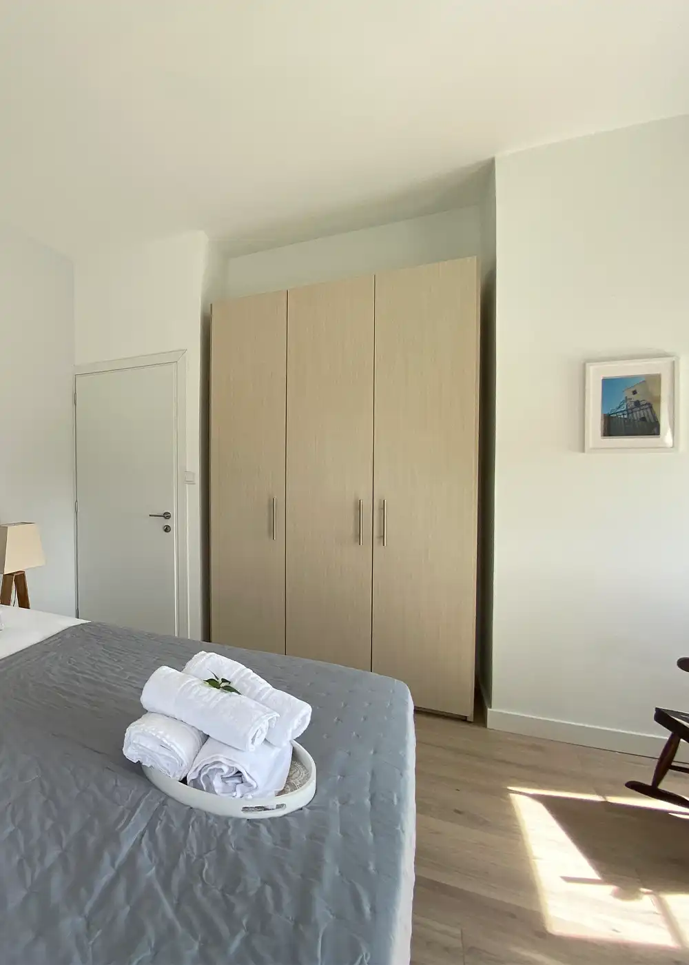 The bedroom is facing north and is like all the other bedrooms very quiet. It has access to a balcony.
