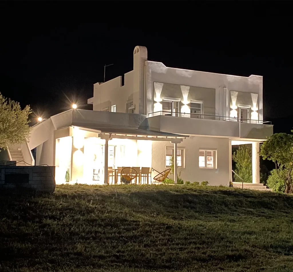 The terrace is facing south and there is sunshine from midday until sunset. A wooden patio roof gives you shadow the whole day.